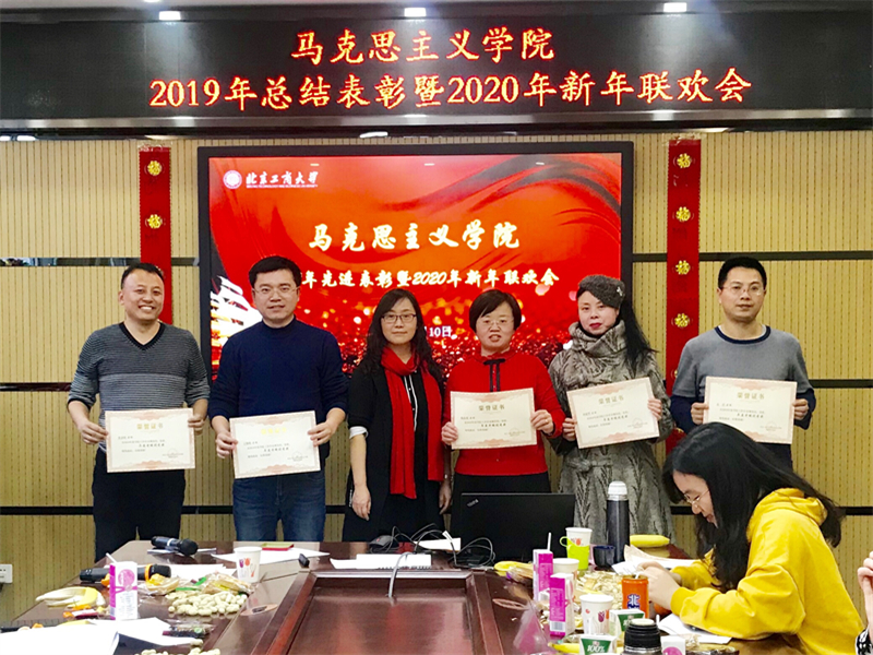 公司领导为2019年在教学与科研工作、社会工作、社会实践与宣传工作等方面表现突出、参与十九届四中全会宣讲、年度师德考核优秀与考核优秀的老师颁奖。