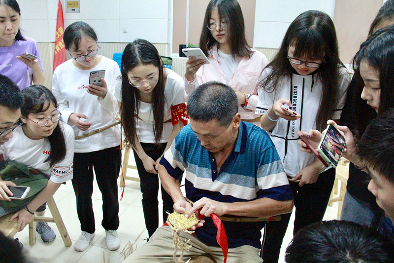 学编红军草鞋,感受军民鱼水情深,也是体验教学的内容之一。木槌、腰杆、撬耙、撬棍、草鞋耙、木凳、稻草、黄麻绳、红丝带这些做草鞋的工具准备好后,基地老师牛鑫瑞开始向学员们展示编草鞋步骤。牛鑫瑞介绍,红军穿着编好的草鞋去长征,既不怕雨天路滑,也不怕山高路远。实践团成员表示学编草鞋不仅需要娴熟的技巧,而且需要充足的体力,在体验编草鞋的过程中铭记历史,忆苦思甜。