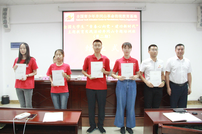 7月27日,实践团成员参加了结业仪式,全国青少年井冈山革命传统教育基地管理中心后勤处副处长刘名教出席结业仪式并为学员颁发结业证书。
