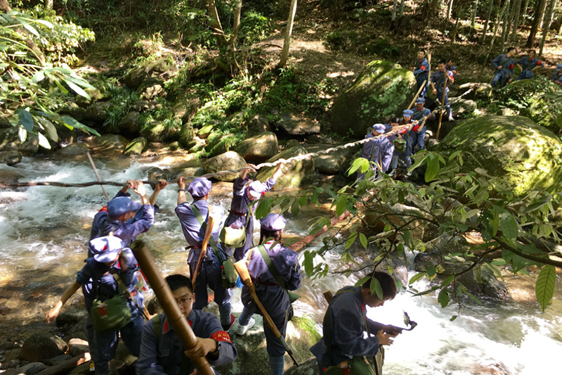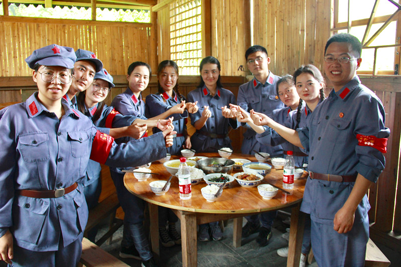“换上红军装,背起红军枪,重走红军路”,体验红军的苦与乐。在云步山练兵场,实践团师生在教官彭杰的指导下圆满完成投掷木质手榴弹、翻越障碍物、攀爬接力、跨越警戒线等任务。到达荆竹山,实践团重走红军路,勇当排头兵,重温“三大纪律”。抵达茨坪革命旧址群现场,成员们参观泽东同志旧居、红四军军部旧址等,学习使用农具,体验农民劳动。来到坝上村农户家中,实践团成员劈柴打水、烧火做饭,完成自做红军餐,并在午休时间访民情,深入了解当地“精准扶贫”政策的实施情况。