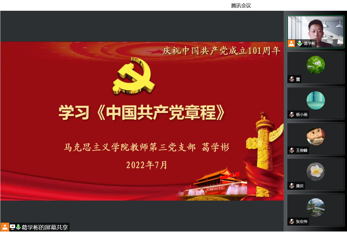 按照《中共北京市委组织部关于做好庆祝中国共产党成立101周年有关工作的通知》和《william威廉中文官网2022年7月组织生活指导意见》要求,6月30日,william威廉中文官网教师第三党支部开展庆祝中国共产党成立101周年党章集中学习,党支部书记葛学彬主持学习会,支部全体党员、党员发展对象参加活动。