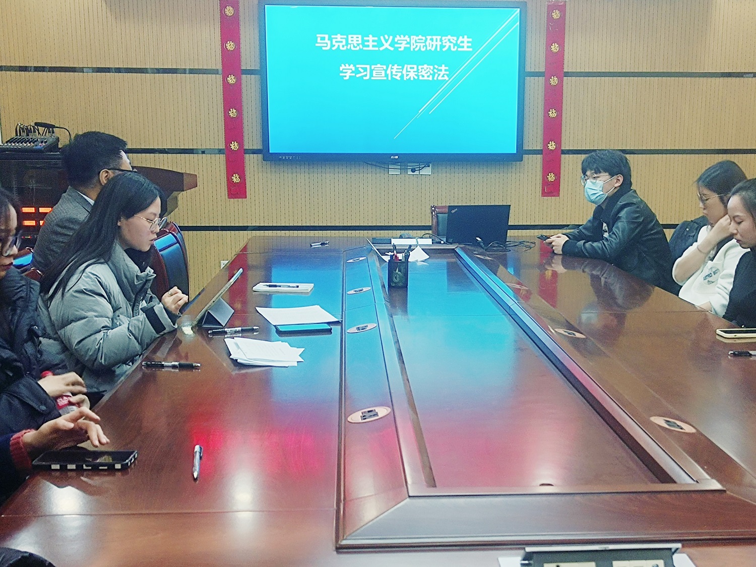 随后,研究生党支部书记曲良雯就《中华人民共和国保守国家秘密法》相关知识对与会人员进行宣传讲解。曲良雯阐述了《中华人民共和国保守国家秘密法》总则、国家秘密的范围和密级、保密制度、监督管理、法律责任、附则六部分的内容,让大家对《中华人民共和国保守国家秘密法》有了更直观的认识,使参会人员充分认识到保密法律法规离大家的生活和工作并不遥远,遵守法律法规,提高警惕是每一个公民的责任和义务。同时她强调我们要坚持以习近平新时代中国特色社会主义思想为指导,坚持总体国家安全观,牢记初心使命、坚定理想信念,做新时代党和国家秘密的忠实守护者。