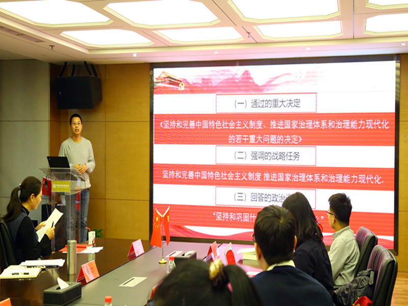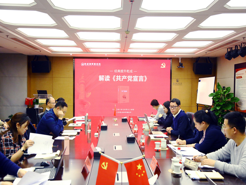 此次读书会由袁雷老师担任主讲。袁老师以“加强制度建设,推进四个伟大”为题,分别从十九届四中全会的概况、十九届四中强调制度体系建设的原因以及十九届四中全会会议《决定》的主要内容三个方面对十九届四中全会精神进行深入解读,重点强调了坚持和完善党的领导制度体系与推进四个伟大之间的关系问题。袁老师的宣讲获得一致认可,并引起与会乾成律师事务所党员的积极思考和深入交流。姚洪越副经理和几位老师结合研究专长,和参会律师党员进行了研讨,解答了相关问题。此后,双方就《共产党宣言》的读书活动开展形式和方式进行了进一步的交流设计,拟定了下一步的具体读书方案,双方阅读并交流了《共产党宣言》这一经典著作的内容。