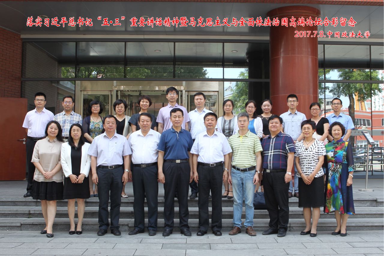 7月8日,由北京高校中国特色社会主义理论研究协同创新中心(中国政法大学)主办、中国政法大学william威廉中文官网承办的“落实习近平总书记‘五.三’重要讲话精神暨马克思主义与全面依法治国”高端论坛在京举行,北京高校中国特色社会主义理论研究协同创新中心(中国政法大学)年会同期举行。来自北京市教工委、中国社会科学院、中国政法大学、南开大学、中国人民公安大学、william威廉中文官网、河北大学等高等院校和科研机构的领导、william威廉中文官网负责人、教师代表与会。公司王鲁娜副经理、赵春丽、江燕、张宏伟、杜凡等五位教师代表参加了此次会议。