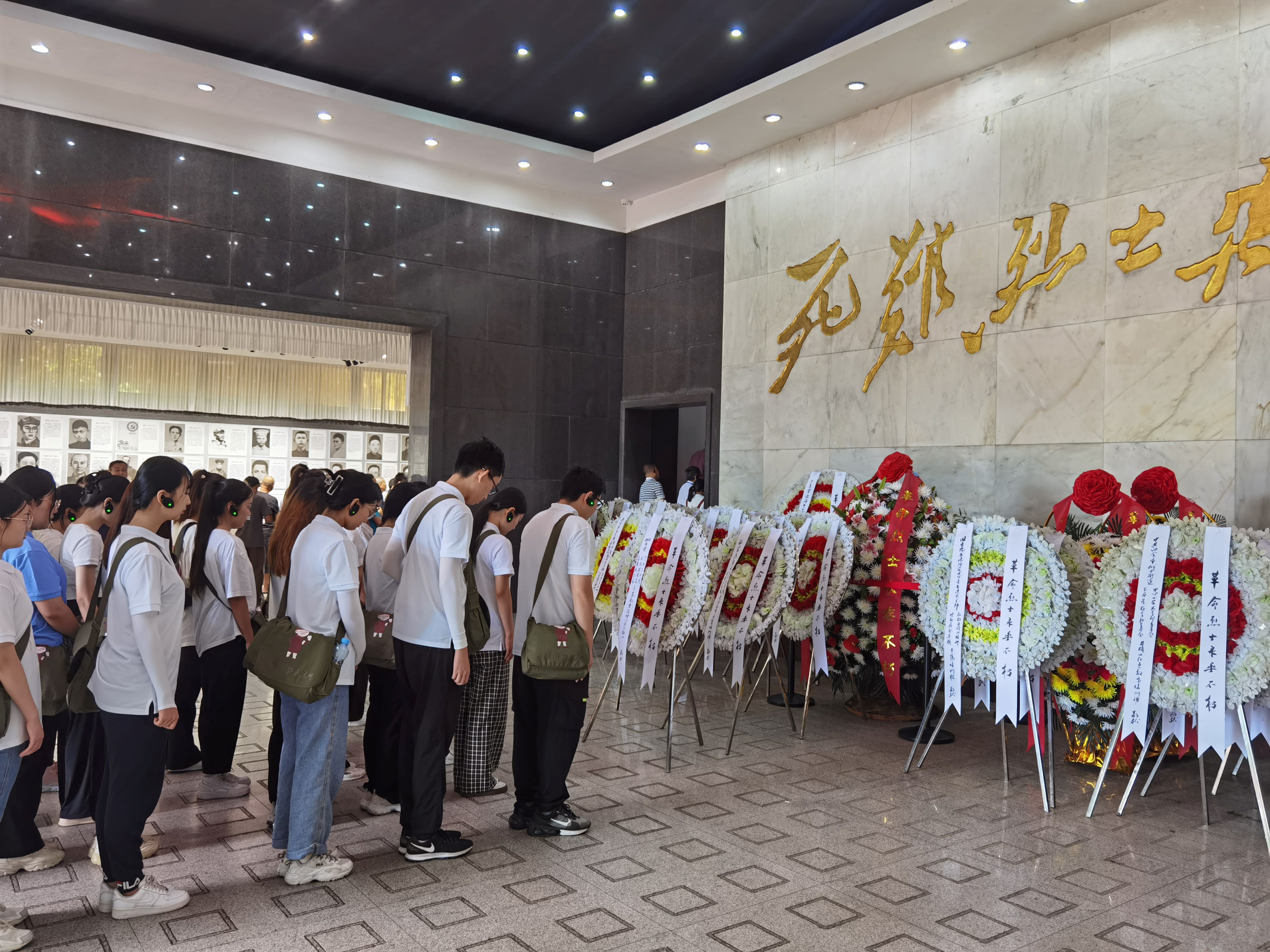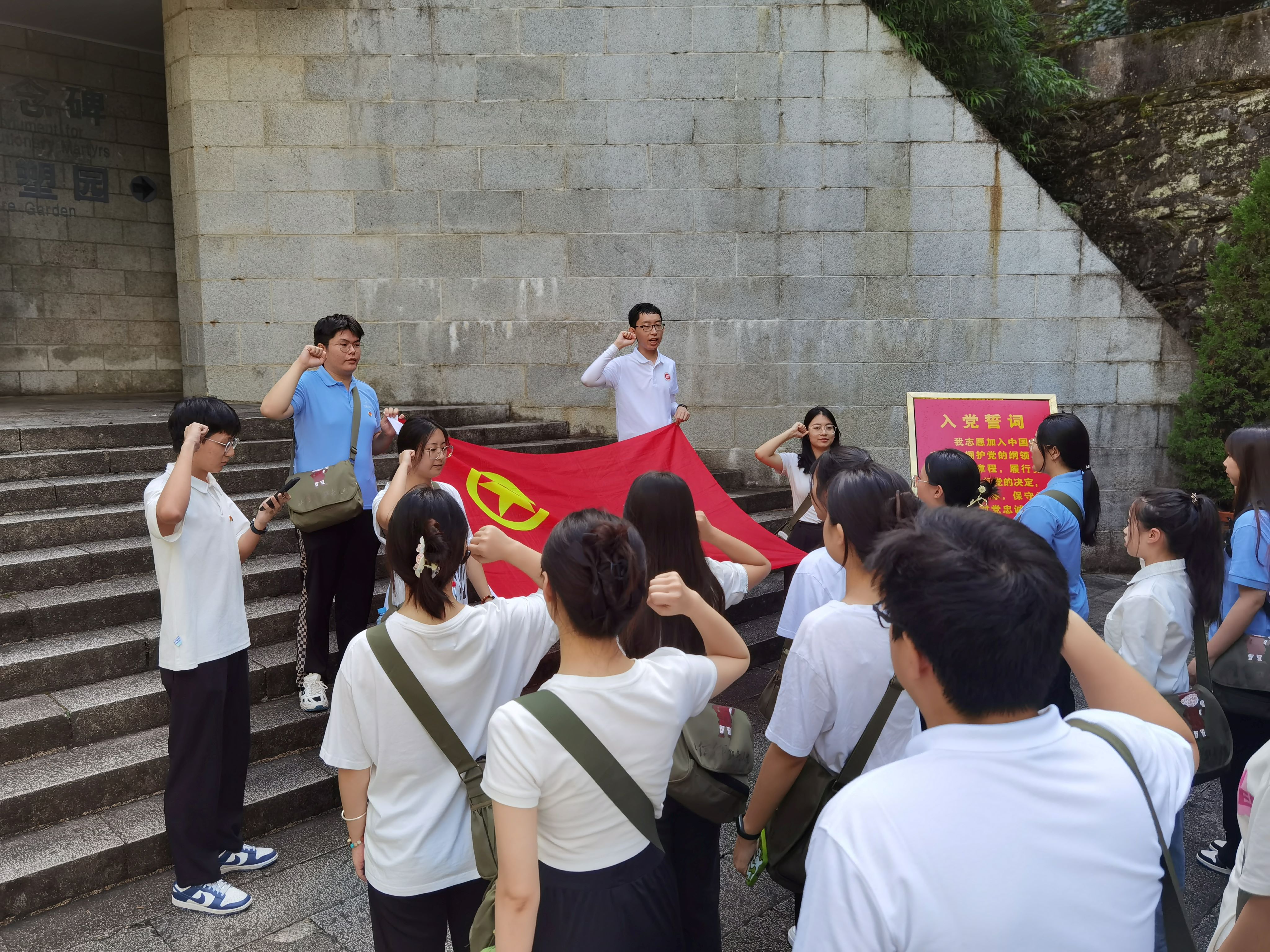井冈山斗争时期,有48000多名革命烈士献出了自己宝贵的生命,永远留在了井冈山这片红土地上,而留下姓名的只有15000余人。实践团前往井冈山革命烈士陵园向井冈英烈敬献花圈,并在烈士陵园纪念堂面对鲜红的党旗重温入党入团誓词,共同再次许下对党无比忠诚的铮铮誓言。