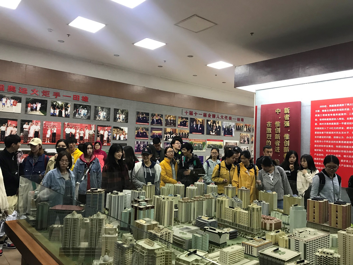 在概论课教师和实践基地讲解员的带领下, 同学们依次参观了韩村河档案展览馆、村民街心公园、韩建河山管业生产基地、高科技蔬菜园区、农家别墅楼,了解到韩村河镇的发展历史、发展成就、发展特点,认识到了韩村河镇的发展动力、发展政策,体会到“韩村河精神”发挥的巨大作用,认识到党员干部和人民群众在发展中的重要作用和相互关系,意识到行之有效的正确政策的重要性,深刻领会到“发展是硬道理”和“敢于创新、实干、敢为人先”的先进发展理念在韩村河镇发展中的重要地位,认识到实体经济、人才政策与党员干部对于韩村河镇发展的重要性,深刻体会习近平总书记所说的“实现好、维护好、发展好最广大人民根本利益”。