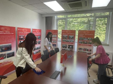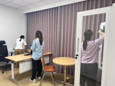 参加人员在认真聆听学习习总书记关于劳动精神的解读后,以宿舍为单位进行合理分工,有序地进行着楼层各个屋子的清扫,物品摆放布置等,为马院楼营造出更具有学术氛围,为师生提供了明亮温馨的地方工作、学习、交流。实践活动结束后,各组结合对劳动精神的学习交流各自的体会。