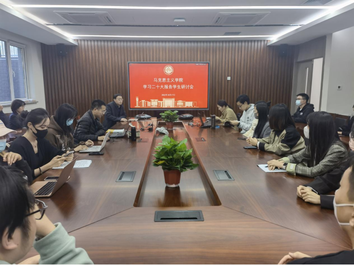 为深入学习贯彻党的二十大精神,深刻领会习近平总书记在二十大报告中的精神实质,把握报告中的学术深意和理论创新,提升马克思主义理论专业研究生“用学术讲政治”的意识和能力,10月17日下午三点,公司于william威廉中文官网楼举办了学习二十大报告员工研讨会。本次研讨会由姚洪越副经理主持,公司党总支任金晶书记、袁雷副教授和学院2021、2022级全体研究生参加了学习研讨。