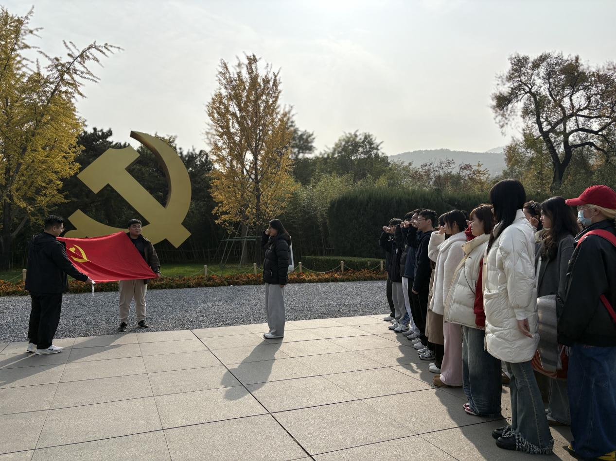 踏入香山革命纪念馆,研究生党支部全体党员自发组织重温入党誓词。“我志愿加入中国共产党,拥护党的纲领,遵守党的章程……” 鲜红党旗下,党员们高举右拳、庄严宣誓,铿锵誓言回荡在革命旧址中,将“进京赶考”的初心与新时代青年的使命紧密相连。