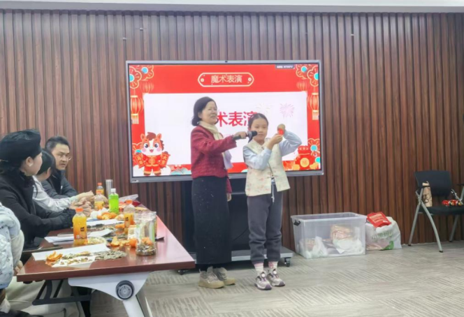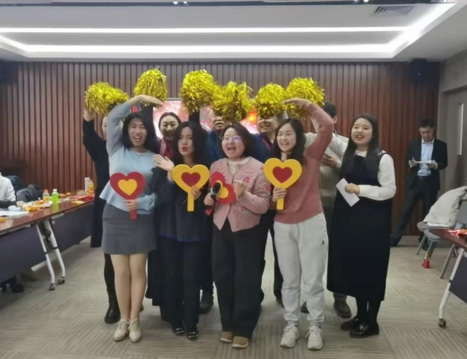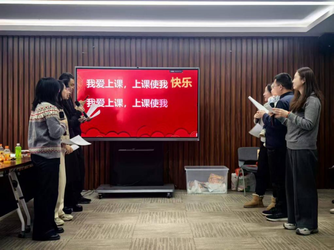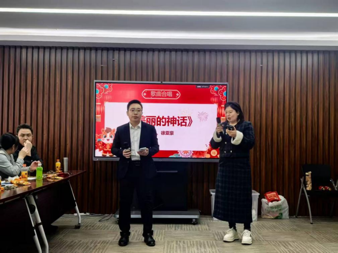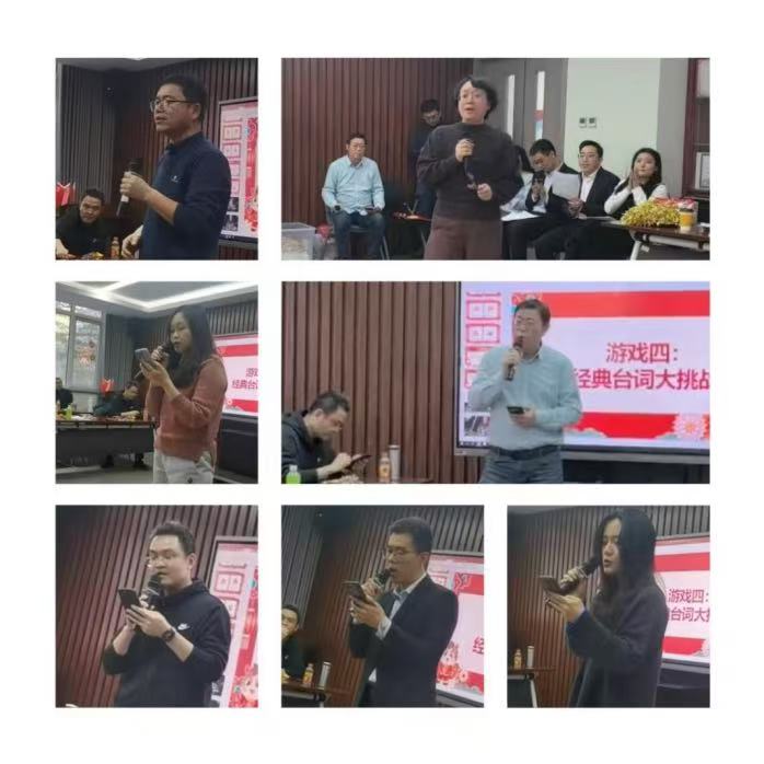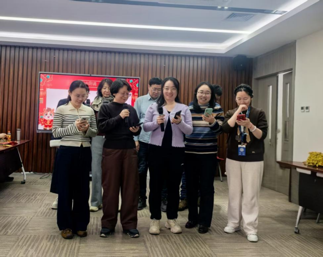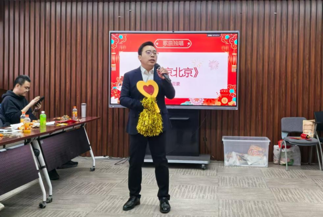 随后,精彩纷呈的文艺节目和互动环节接连上演。曹菲与徐亚豪老师深情对唱的《美丽的神话》奠定了温馨的基调,小朋友的魔术表演则带来了阵阵惊喜。各教研室纷纷献上拿手好戏:纲要教研室全体教师的合唱《365个祝福》传递了真挚暖意;概论教研室气势恢宏的诗朗诵《沁园春·雪》展现了家国情怀与豪迈气概;原理教研室深情款款的朗诵《我爱上课》,表达了对教育事业的无限热爱;思法教研室的《北京北京》唱出了对这座城市的深厚情感。唐庆、王俊峰、王东、祁飞、藤曼、王悦、姚洪越老师的即兴演唱更是将现场气氛推向了高潮。穿插于节目之间的互动游戏“绕口令”、“马年emoji猜猜乐”、“谐音梗”和“影视台词猜猜猜”妙趣横生,极大地调动了老师们的参与热情,现场掌声不断、笑声不断,大家深深感受到了公司大家庭的温暖与凝聚力。