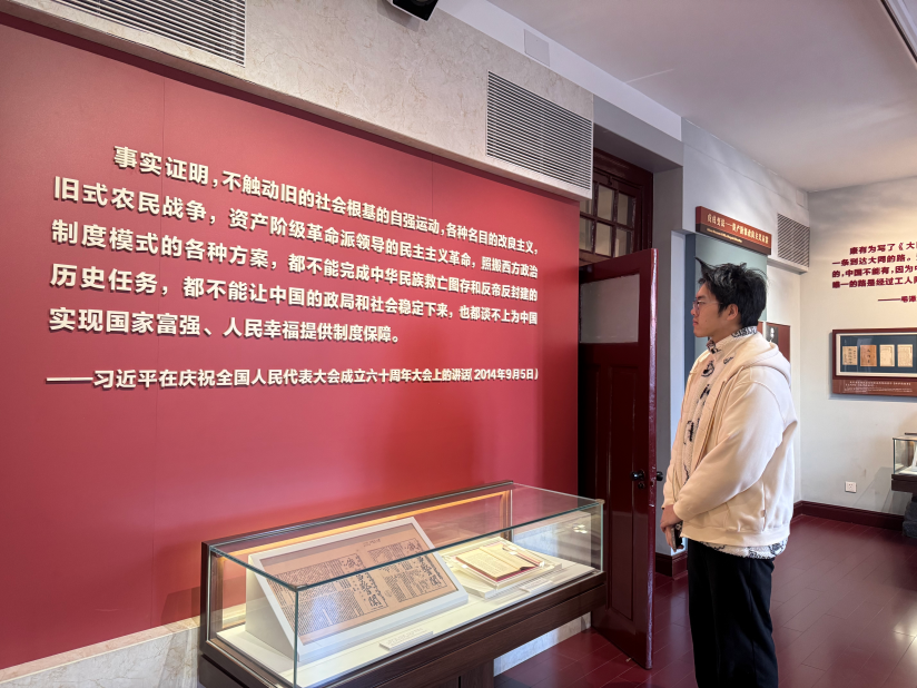 参观之前,红楼于我只是历史书页上的一个名词。当真正踩着展厅里红木板,才发觉北大红楼带着历史书上的符号活过来了。《新青年》的原件字迹清晰,先驱们的手稿带着墨痕温度。没有华丽的装饰,只有真实的史料静静陈列,却比任何宣讲都更有力量。我从最初的疏离,到渐生的震撼,再到满心的敬畏,分明看见一颗红色的星,在百年前的暗夜中悄然点亮。我明白了英雄从不是遥远的符号,我们要在自己的时代里,认真生活、勇敢前行。