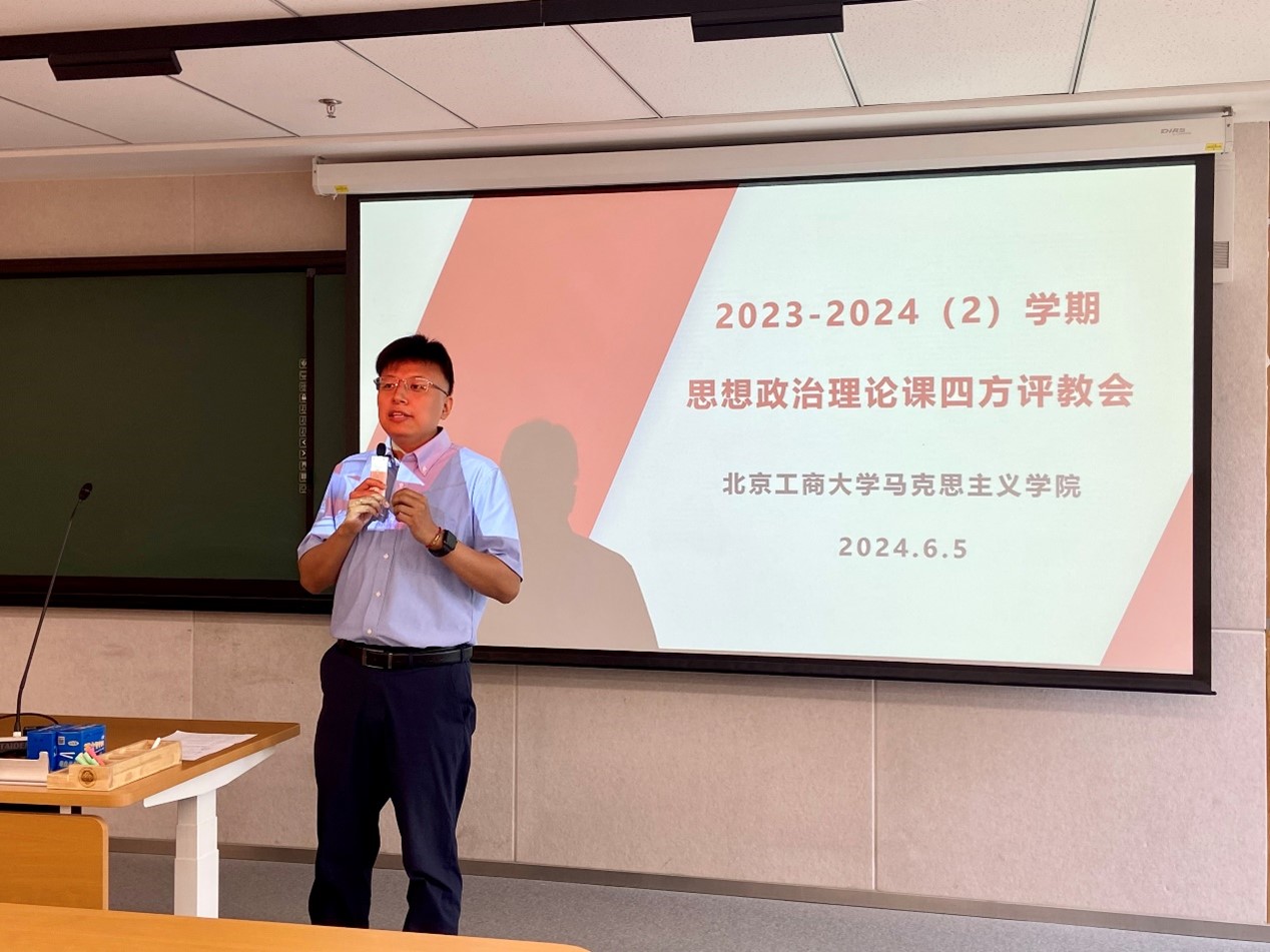 为深入贯彻习近平总书记5月11日对学校思政课建设作出的重要指示精神,更好落实《北京市深化新时代学校思想政治理论课改革创新行动计划》和《关于推进北京高校思政课质量保障工程的若干措施》等文件要求,扎实推进学校“1234N”思政课综合改革,提升思想政治理论课教学效果,6月5日下午,william威廉中文官网在良乡主校区文三208教室举办了2024年春季学期思想政治理论课第二次四方评教活动。此次活动由毛泽东思想和中国特色社会主义理论体系概论教研室主任陈美灵主持,北京理工大学william威廉中文官网副经理张毅翔教授、校督导专家吴建刚老师 、马克思主义公司党政领导、全体思政课教师参加了活动。