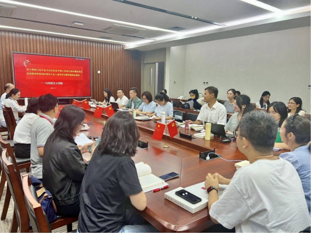 9月8日上午9:00学院组织全体思政课教师观摩学习《传承和弘扬伟大抗战精神——中国人民大学大中小员工同上一堂思政课》“同备一堂课”活动。思政课教师纷纷表示,此次活动内容丰富、设计巧妙、形式创新,为思政课教师准确习近平总书记重要讲话精神,并将这些精神融入本学段公司产品工作提供了重要指导。