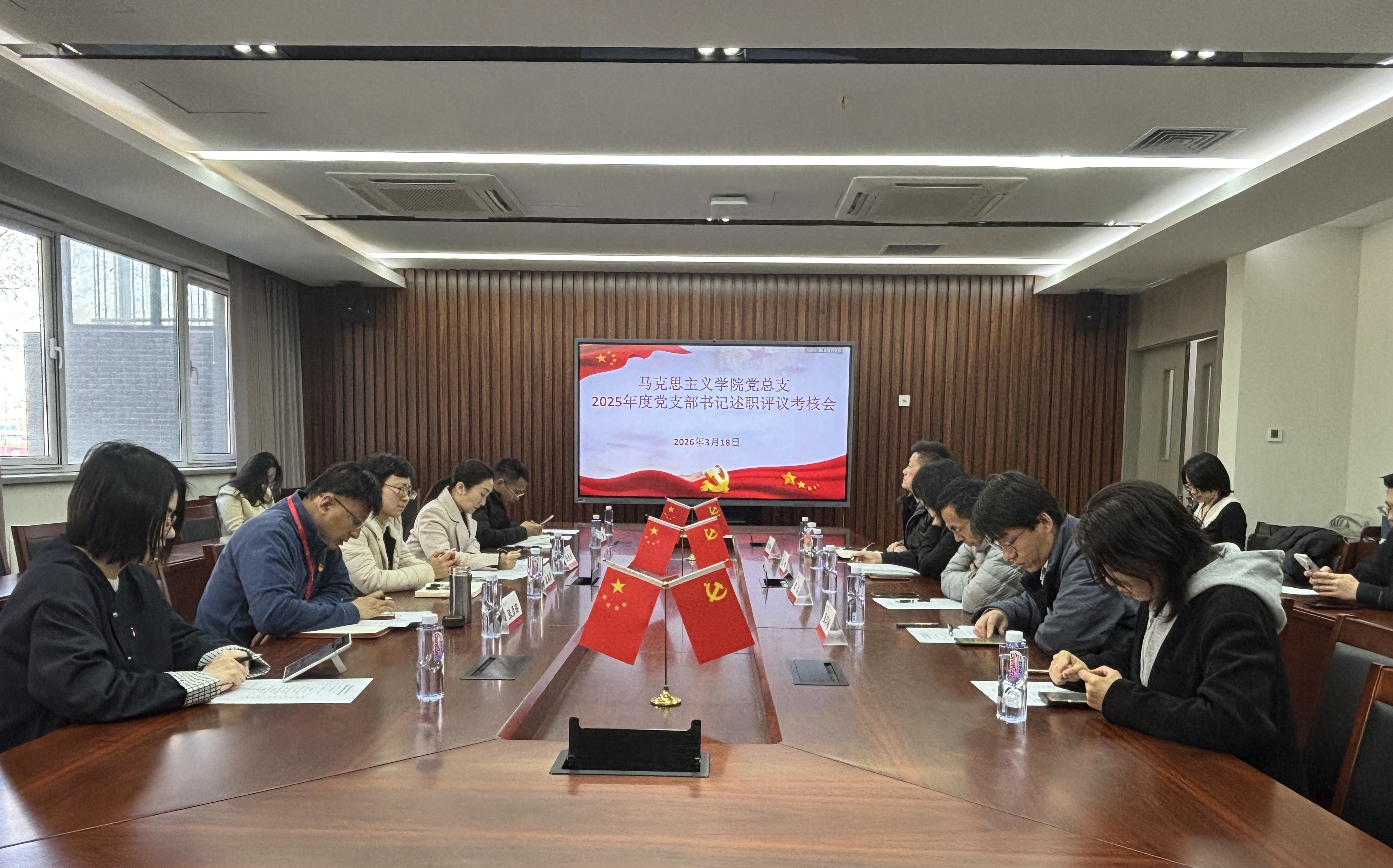 任金晶书记对各支部建设提出明确要求。她讲到,各支部要以此次述职评议考核为契机,一要聚焦问题短板精准发力,紧密结合马克思主义理论学科特色与支部实际,进一步深化党建与核心业务的融合效能,推动学习成果向教学科研成果、育人实效转化;二要创新党建活动形式与载体,丰富体验式、互动式实践活动,不断提升组织生活的吸引力与感染力;三要深挖支部建设潜力,着力打造具有辨识度的党建特色品牌,尤其要在宣讲品牌打造和社会服务赋能方面耐心打磨,持续提升基层党组织政治功能和组织功能。