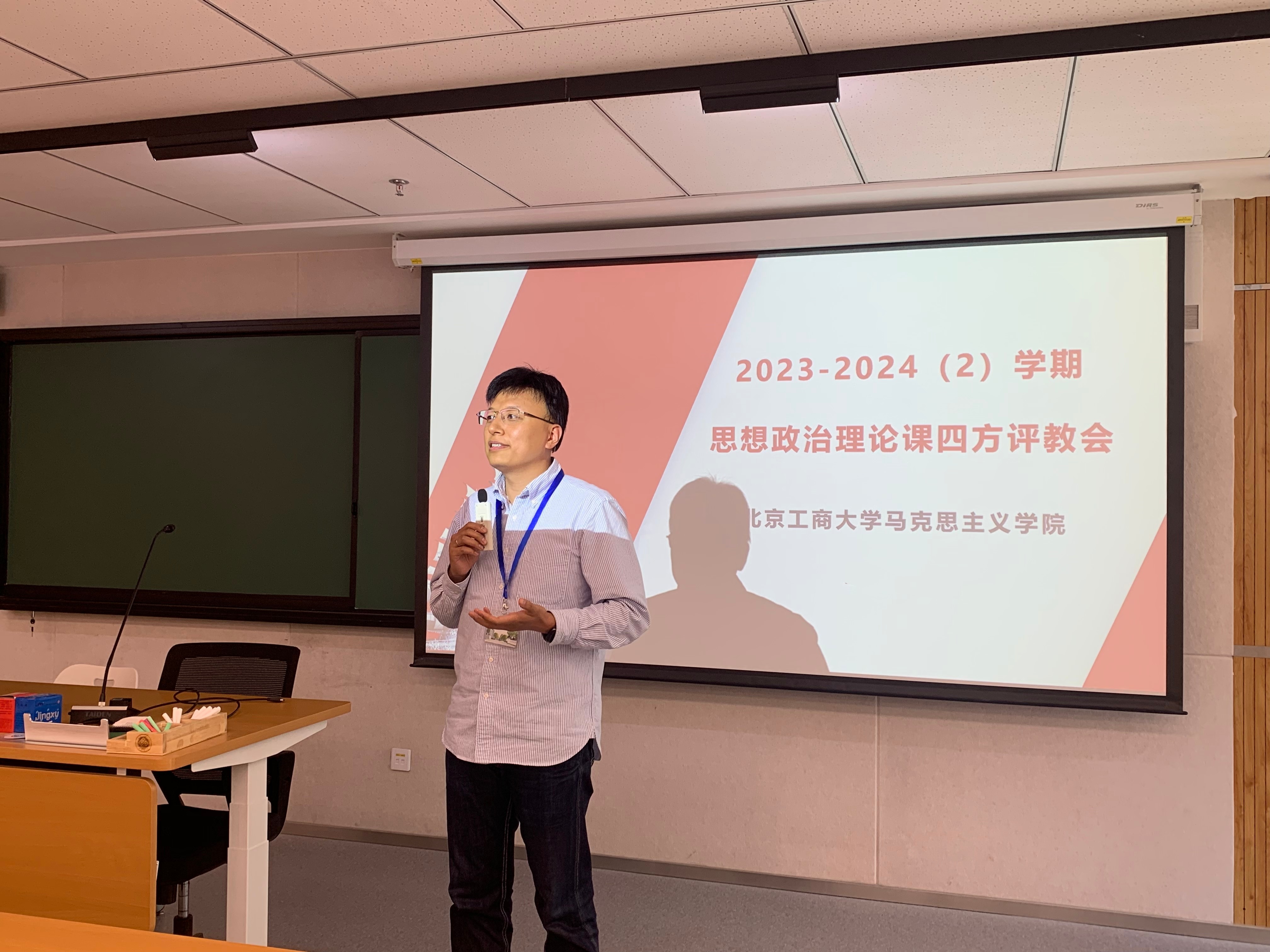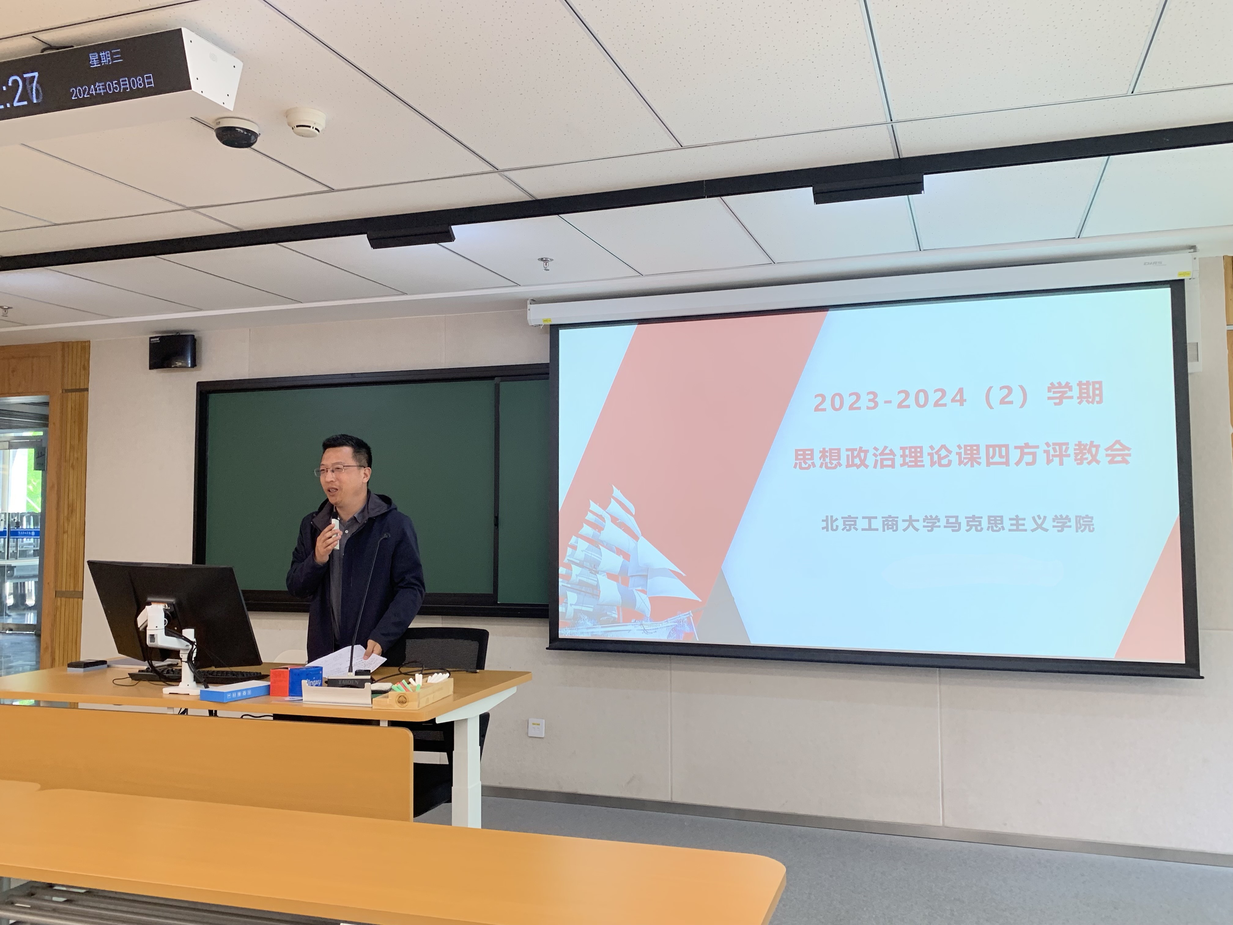 为深入贯彻习近平总书记在学校思想政治理论课教师座谈会上的重要讲话精神,更好落实《北京市深化新时代学校思想政治理论课改革创新行动计划》和《关于推进北京高校思政课质量保障工程的若干措施》等文件要求,扎实推进学校“1234N”思政课综合改革,提升思想政治理论课教学效果,5月8日上午,william威廉中文官网在良乡主校区文三208教室举办了2024年春季学期思想政治理论课第一次四方评教活动。此次活动由思想道德与法治教研室主任姜茹茹主持,中国政法大学李志强教授、马克思主义公司党政领导、全体思政课教师参加了活动。