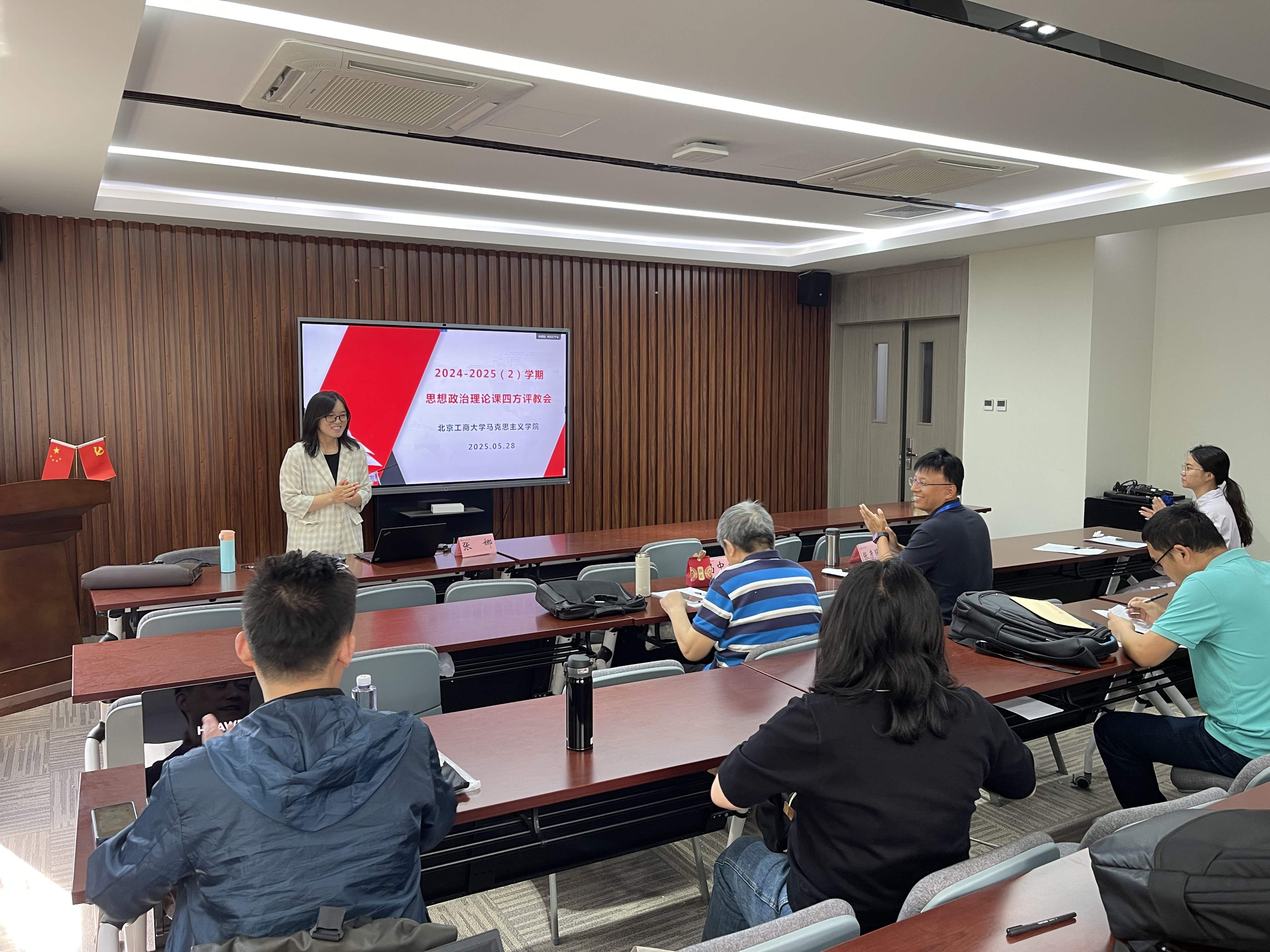 为深入贯彻习近平总书记关于学校思政课建设的重要思想,更好落实《北京市深化新时代学校思想政治理论课改革创新行动计划》《关于推进北京高校思政课质量保障工程的若干措施》等文件的相关要求,扎实推进学校“1234N”思政课的综合改革,提升思想政治理论课教学效果,william威廉中文官网于5月28日举办2025年春季学期思想政治理论课第二次四方评教活动。出席本次活动的有学校督导专家冯中越教授、马克思主义公司党政领导以及全体思政课教师。此次活动由马克思主义基本原理教研室主任张娜主持。