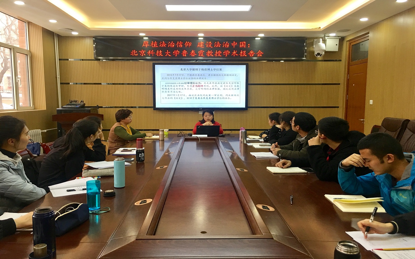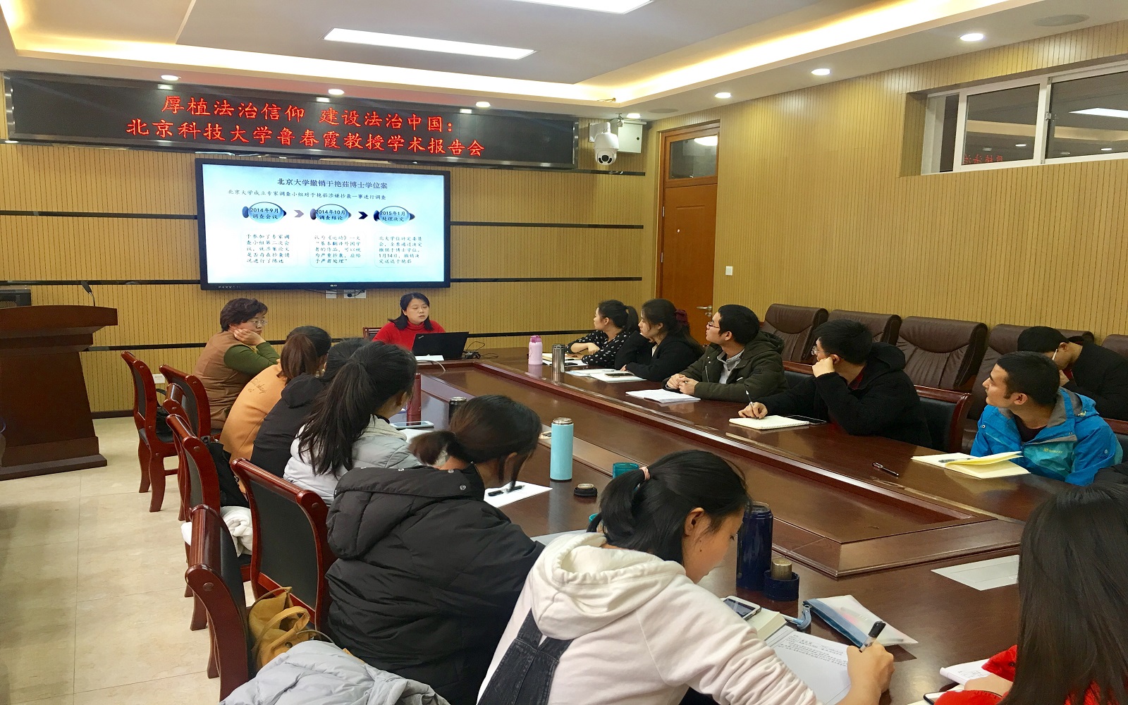 杨春花老师总结指出,通过此次讲座,进一步开阔了参会研究生的学术眼界,提高了他们对全面依法治国的认识。