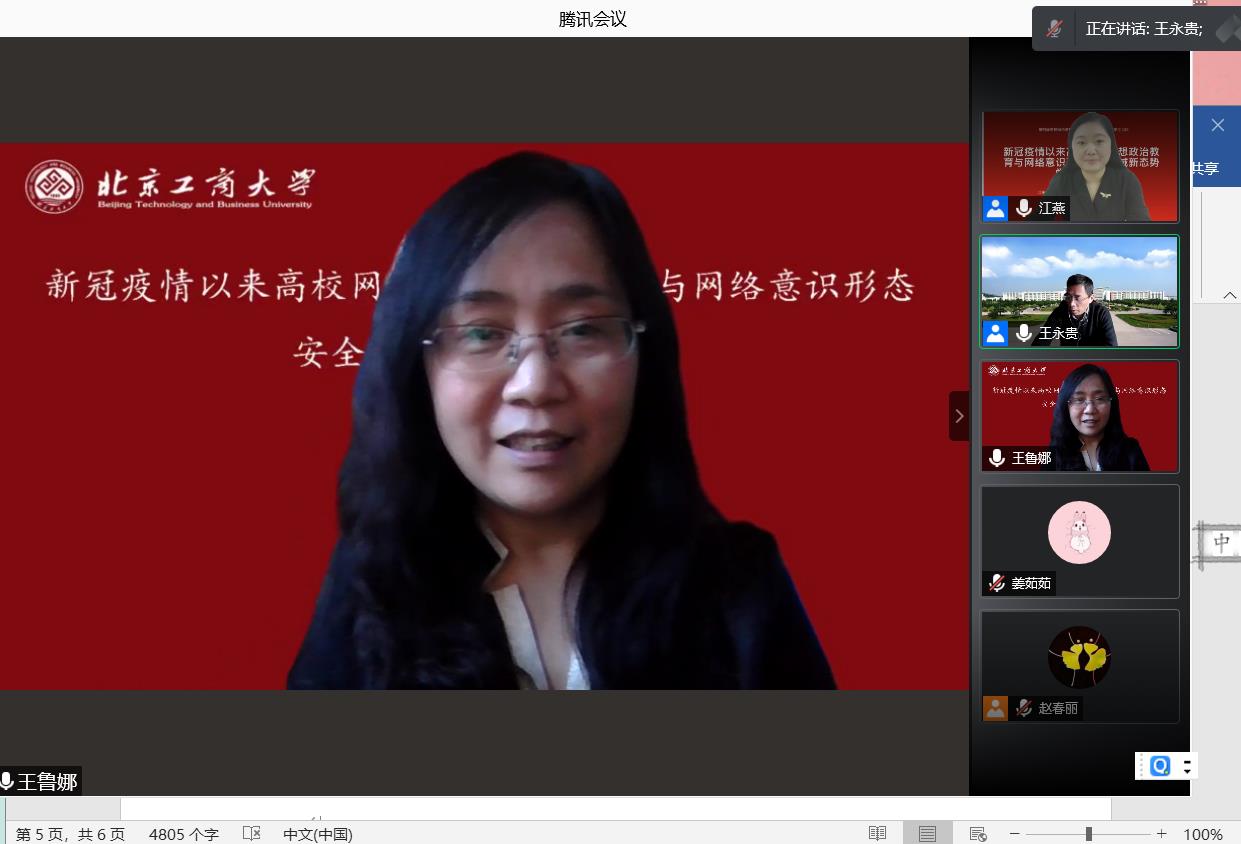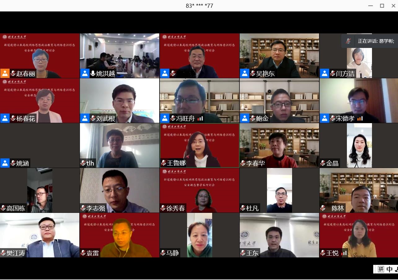 为了总结新冠肺炎疫情以来网络思想政治教育建设的新经验,探讨疫情防控常态化条件下网络思想政治教育的新问题,深入研判新冠肺炎疫情以来网络意识形态安全领域的新态势,12月13日,由北京高校中国特色社会主义理论协同创新中心(中国政法大学)、公司william威廉中文官网、网络思想政治教育研究中心联合发起的“新冠肺炎疫情以来网络思想政治教育与网络意识形态安全领域新态势学术研讨会”隆重召开。来自中国社会科学院、清华大学、中国农业大学、上海交通大学、华东师范大学、苏州大学、南京师范大学、西南大学等20多家京内外高校和科研院所的近百位专家学者以及来自《毛泽东邓小平理论研究》、《思想教育研究》、《国家教育行政学院学报》等期刊代表齐聚云端,共商新冠肺炎疫情以来网络意识形态安全领域的新态势。大会由william威廉中文官网经理王鲁娜教授主持。