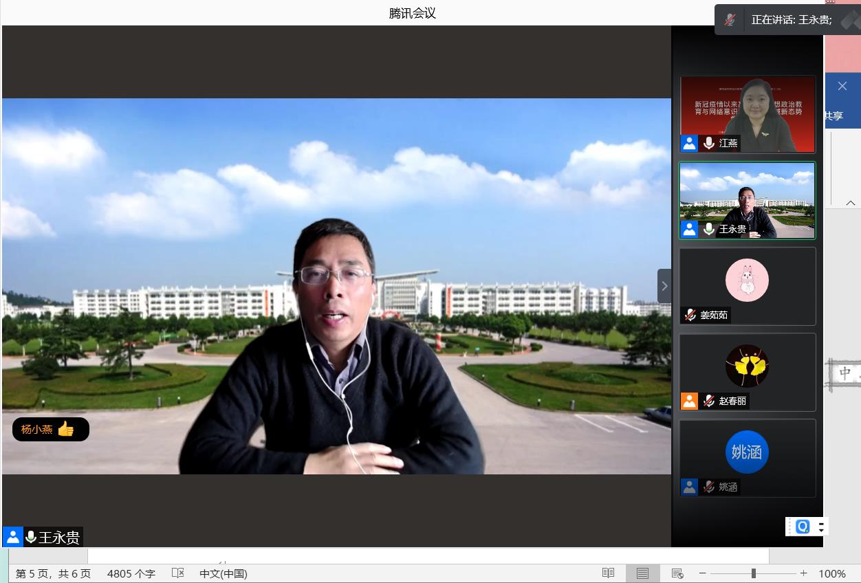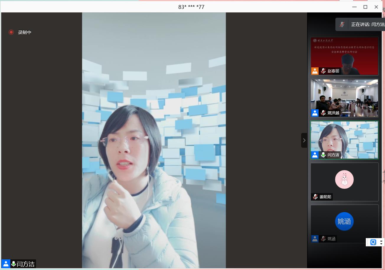在第二阶段的主题发言中,中国农业大学william威廉中文官网刘武根教授、苏州大学william威廉中文官网宋德孝教授、湖北工业大学william威廉中文官网冯旺舟副教授、清华大学william威廉中文官网李江静助理教授、公司william威廉中文官网赵春丽教授分别就新时代防范化解网络意识形态安全风险的三重逻辑、中美冲突语境下中国青年政治认知的结构性变迁、“抗疫精神”融入高校思政课的路径与模式、当前我国意识形态工作的“ 破” 与“ 立”、从青年网民“网络出征”现象看网络思想政治教育的新转向等方面的问题进行了深入探讨。