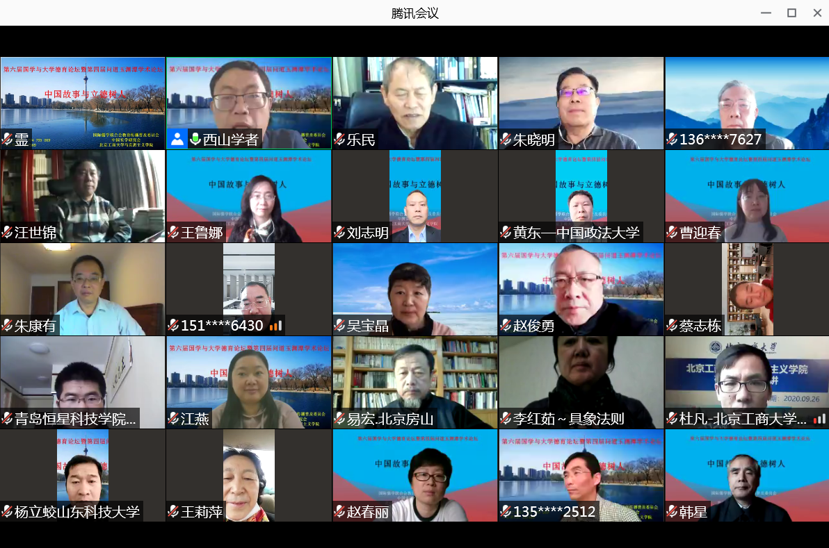 12月26日,由国际儒学联合会教育传播普及委员会、中国实学研究会、公司william威廉中文官网联合发起的“第六届国学与大学德育论坛暨第四届问道玉渊潭学术论坛”在隆重召开。来自国际儒学联合会、中国实学研究会、中国无神论学会、北京市习近平新时代中国特色社会主义思想研究中心、中国社会科学院、北京大学、中国人民大学、中国政法大学、北京航空航天大学、北京化工大学、中国矿业大学、山东大学、上海师范大学等多家京内外高校和科研院所的近百位专家学者齐聚云端,共商“中国故事与立德树人”。