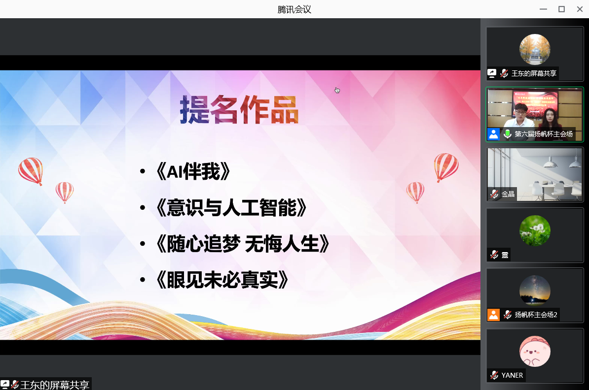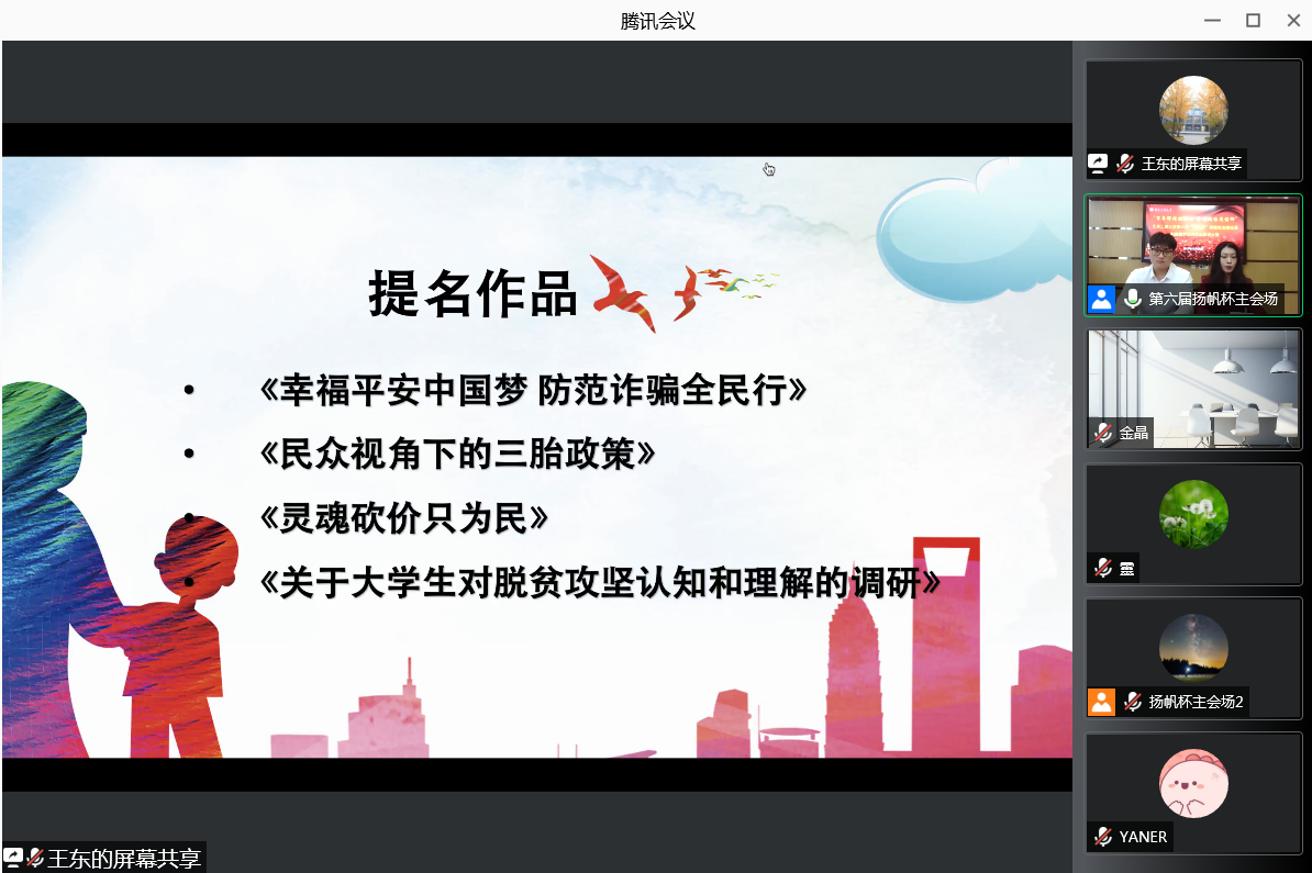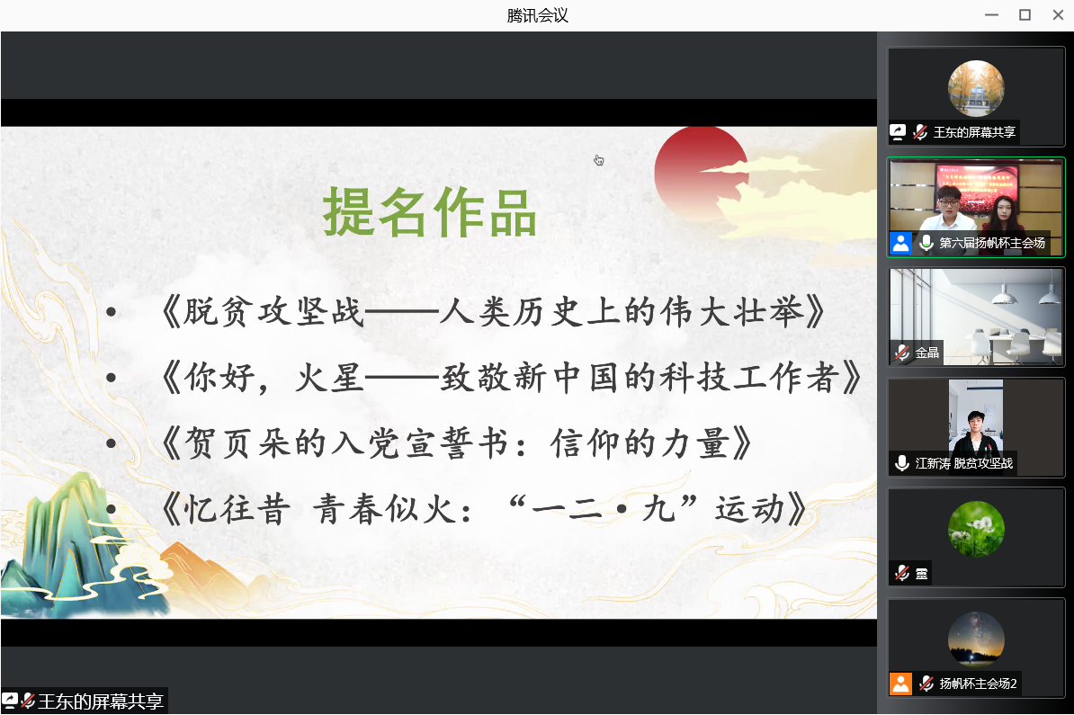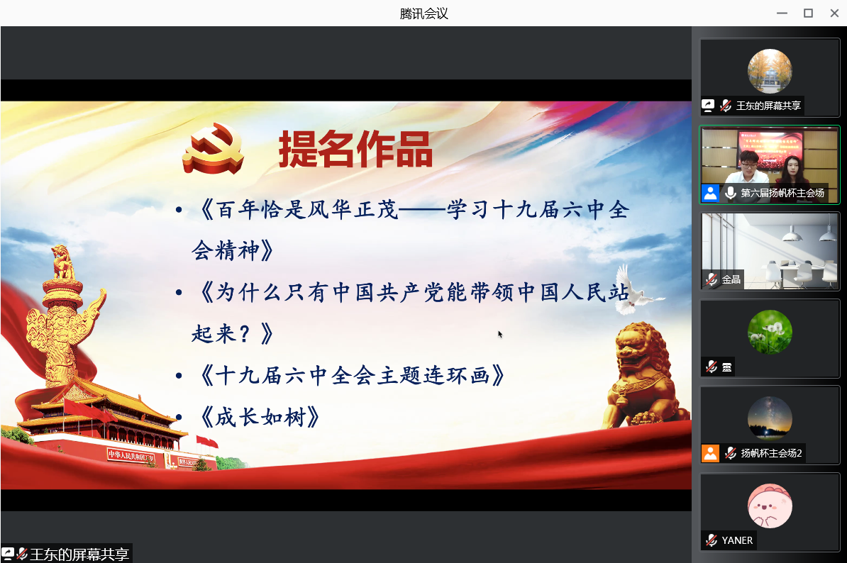 现场公布了第六届“扬帆杯”思想政治理论课实践教学优秀作品展评大赛展评结果。出席大赛的领导和教师员工进行云端大合影。