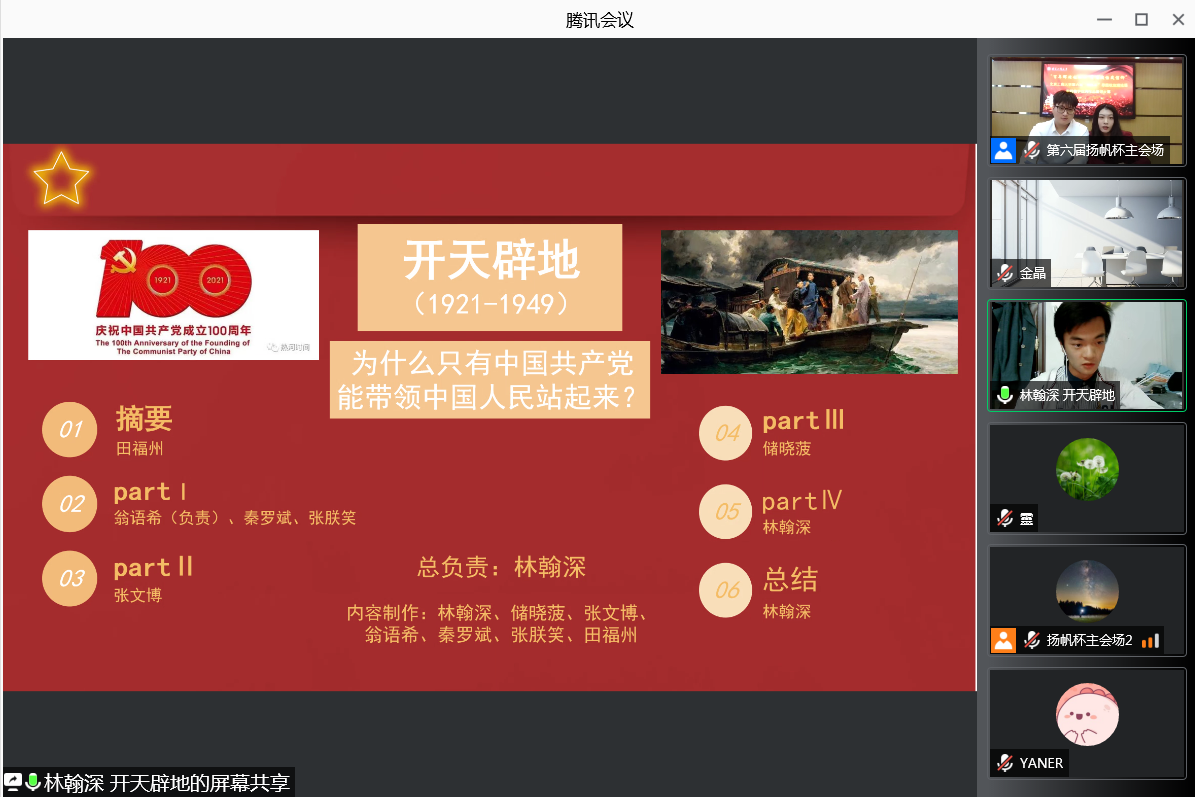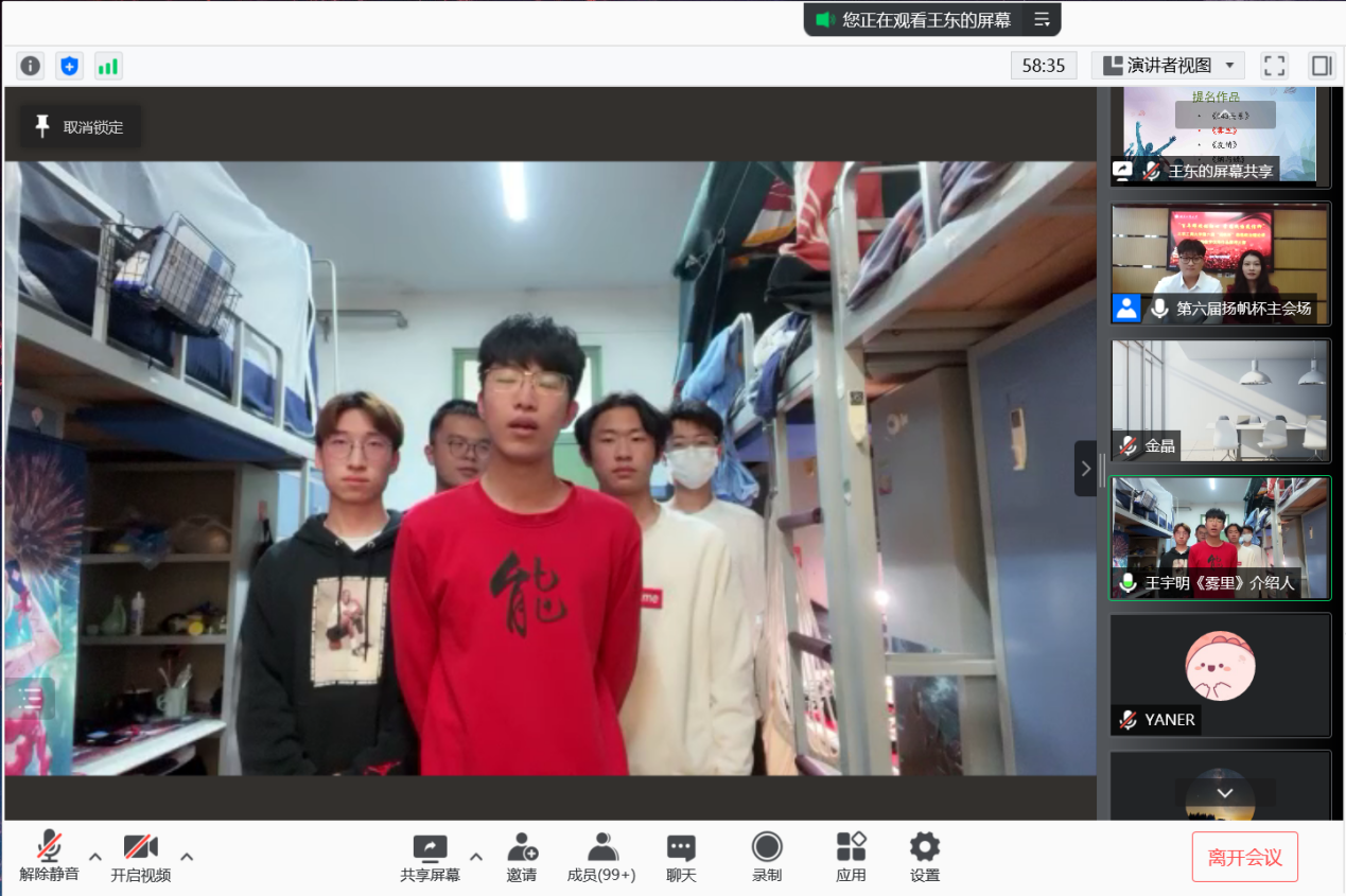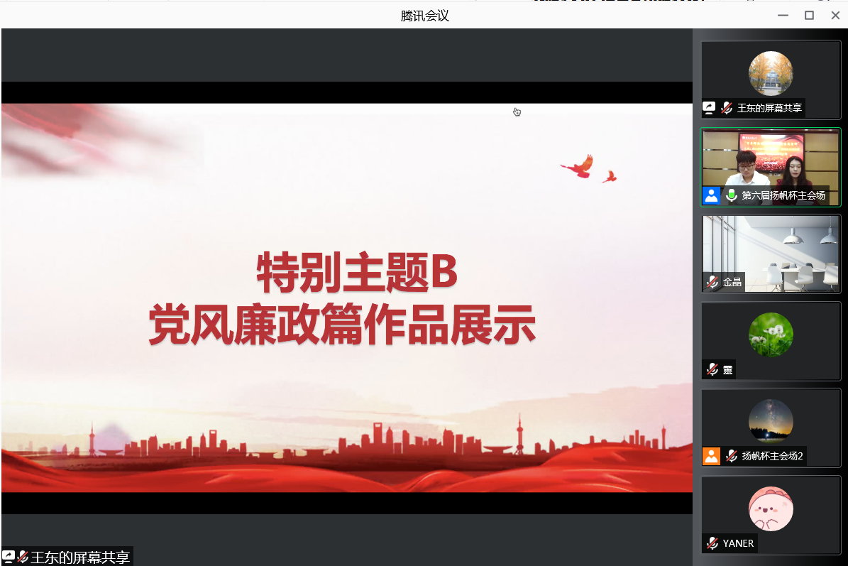 现场公布了第六届“扬帆杯”思想政治理论课实践教学优秀作品展评大赛展评结果。出席大赛的领导和教师员工进行云端大合影。