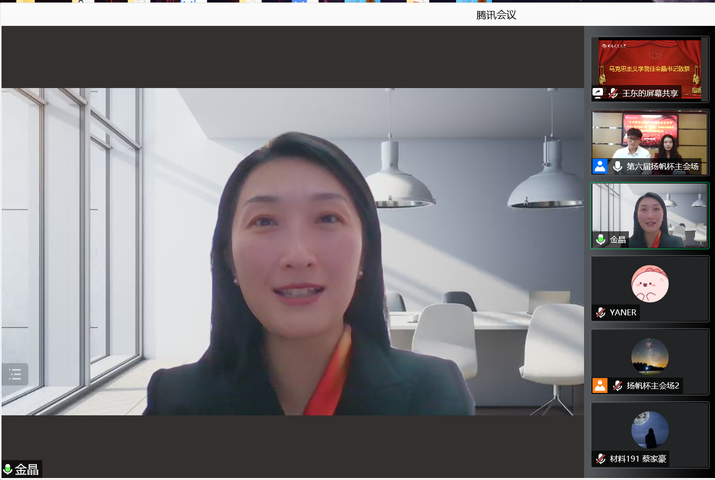 为深入学习贯彻习近平总书记在学校思想政治理论课教师座谈会上的讲话精神,切实落实中共中央办公厅、国务院办公厅《关于深化新时代学校思想政治理论课改革创新的若干意见》要求,推进思想理论课改革创新,深化实践教学改革探索,展示和表彰思想政治理论课社会实践优秀作品,12月29日下午,william威廉中文官网和教务处联合举办的“百年辉煌铭初心 学思践悟筑信仰”——william威廉中文官网第六届“扬帆杯”思想政治理论课实践教学优秀作品展评大赛通过线上线下相结合的方式隆重举行。william威廉中文官网教务处杨华副处长、马克思主义公司党总支任金晶书记、樊江涛副书记、姚洪越副经理、江燕副经理、学院所有老师、参与展演的24个团队成员代表参加大赛。各院系员工代表近150人观摩了参赛作品展评并参与云端实时投票,大赛由william威廉中文官网研究生沈彦兵、张雯博主持。