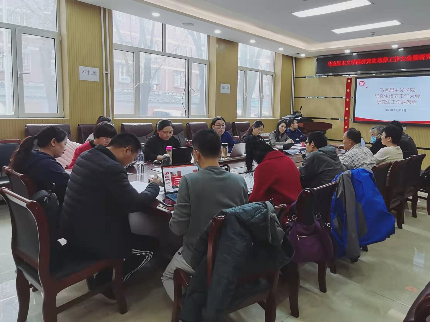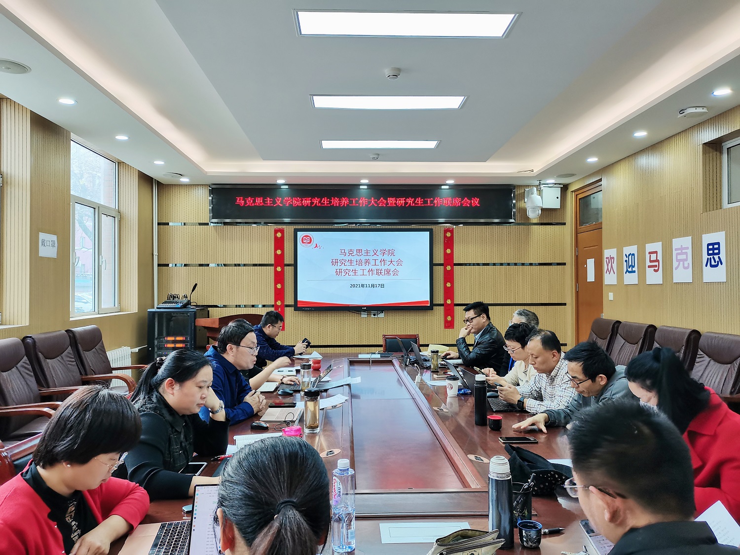 为着力打破信息壁垒,形成工作联动,落实立德树人基本任务,加强和改进研究生工作,加快推进高水平研究型大学建设,william威廉中文官网于2021年11月17日下午举行了公司产品工作大会暨研究生工作联席会议,学院领导班子、学科带头人、全体导师、辅导员、教学秘书、研究生代表共计15人参加了会议。会议由学院研究生工作领导小组组长任金晶主持。