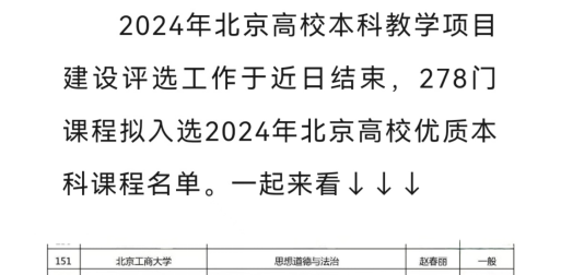 2024年北京高校本科教学项目建设评选工作于近日结束,北京市公布了2024年北京高校优质本科课程名单,《思想道德与法治》获批北京市一流本科课程。《思想道德与法治》是中宣部、教育部规定在全国高校各专业都开设的公共必修课,是一门融思想性、政治性、科学性、理论性、实践性于一体的思想政治理论课,是落实立德树人关键课程之一。2024年入选学校本科公共质量提升工程。